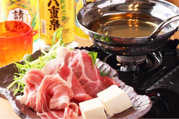 「みやぶた」は、甘やかな脂身が食通を唸らせる逸品。八重山の種類豊富な泡盛とあわせて賞味ください。